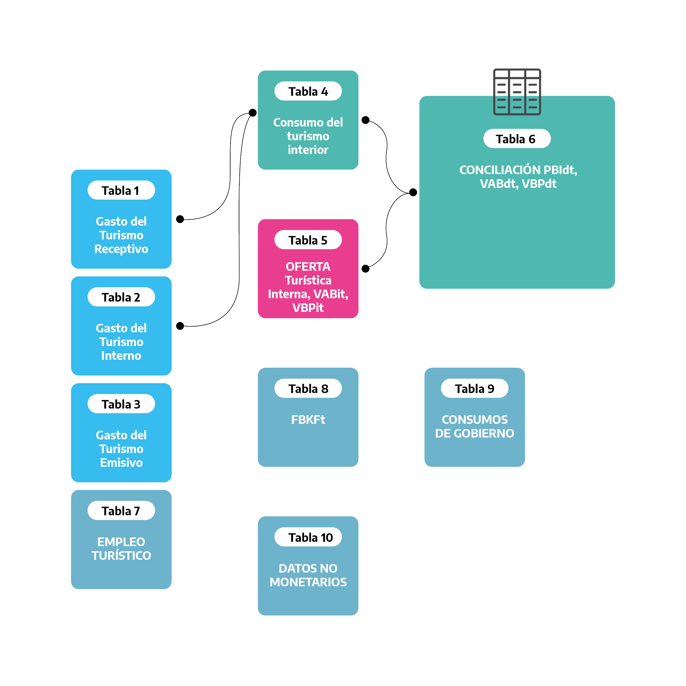 Recorrido por las Tablas de la Cuenta Satélite de Turismo de Argentina (CST -A) identificando qué información nos ofrecen y cómo se interrelacionan para obtener el impacto económico del turismo