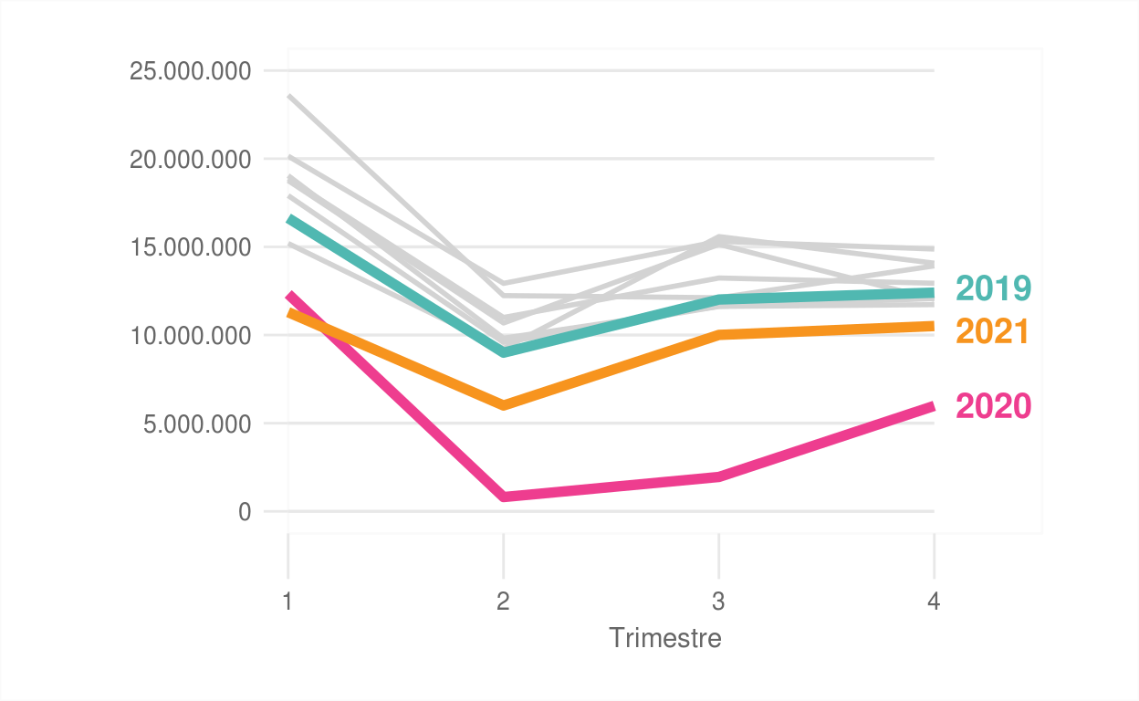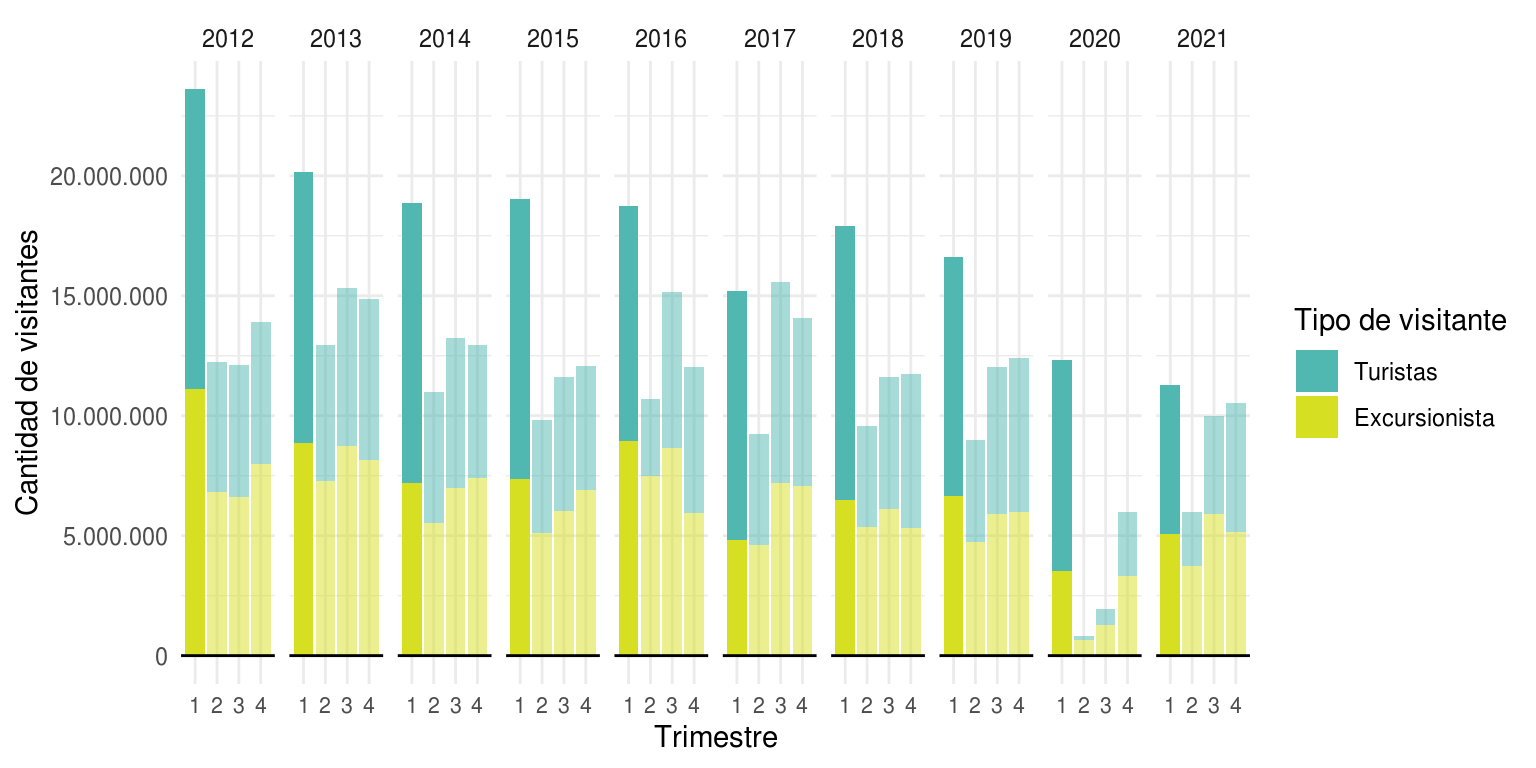 Con la publicación del Anuario 2021 se reanuda el trabajo de compilación de estadísticas del turismo que se realizó entre 2005 y 2015. Esta nueva edición presenta características novedosas en términos de formato, reproducibilidad y contenido.