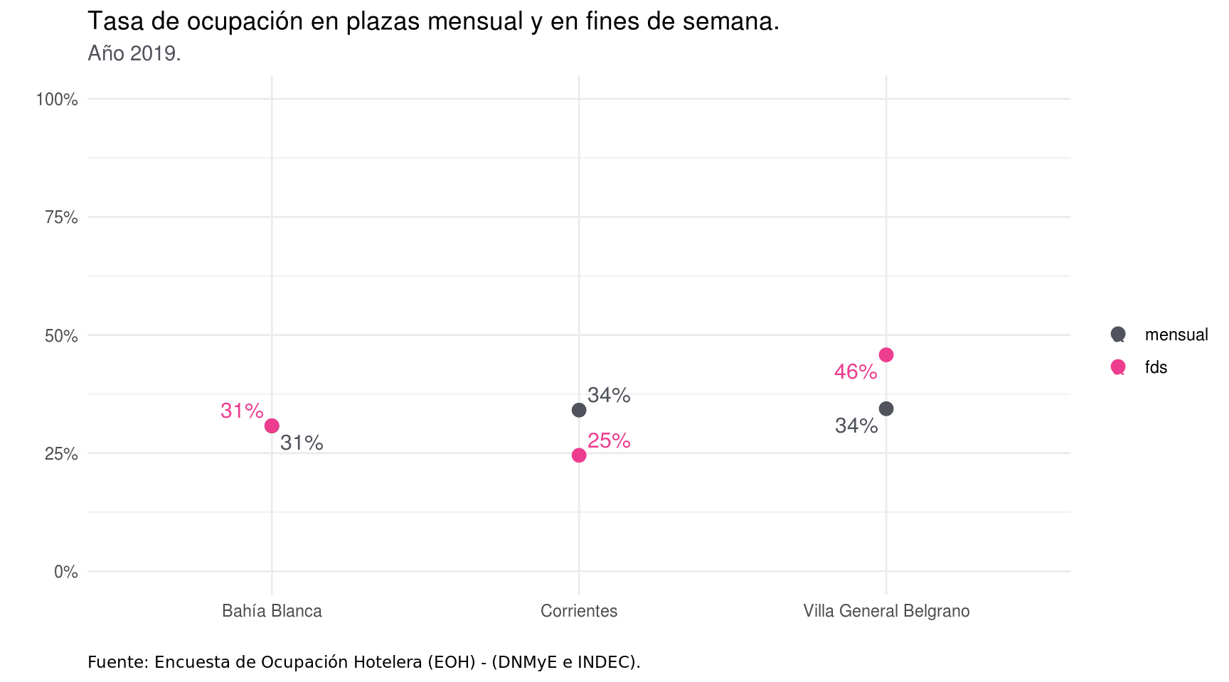 Caracterización de la estacionalidad turística en Argentina a partir de un análisis territorial de la ocupación hotelera y el empleo.