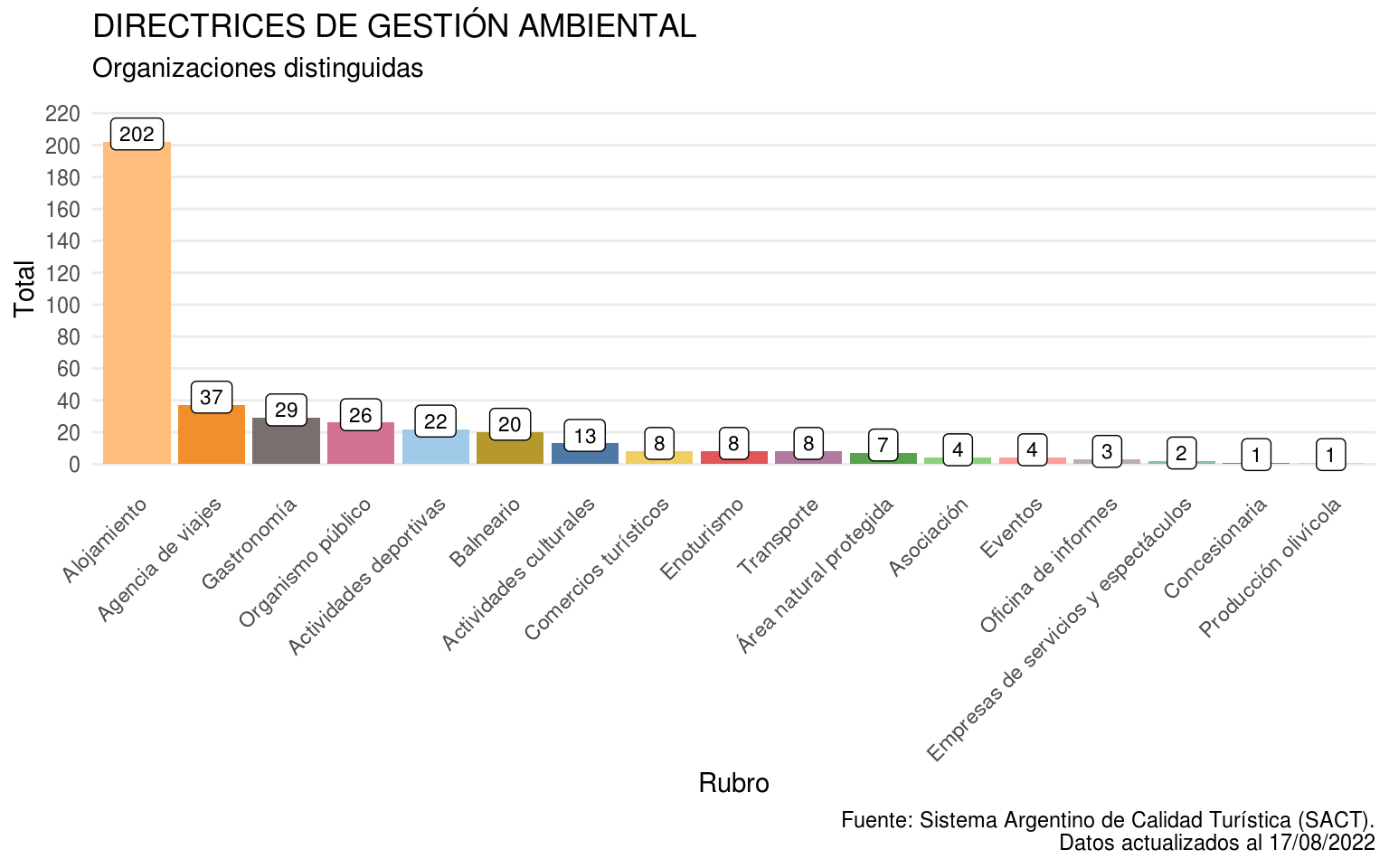 Principales indicadores para caracterizar las organizaciones distinguidas por el programa de Directrices de Gestión Ambiental del Sistema Argentino de Calidad Turística.